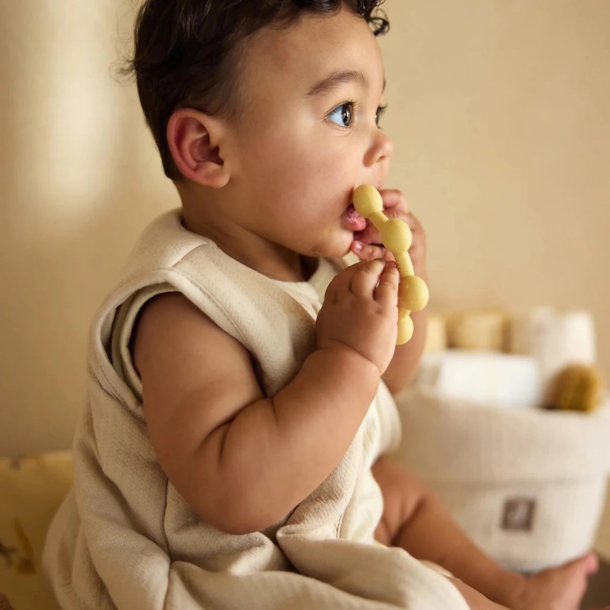 Sanfte Farben: Wählen Sie zwischen den trendigen Tönen Sand oder Oatmeal – passend zu jeder Babyausstattung.