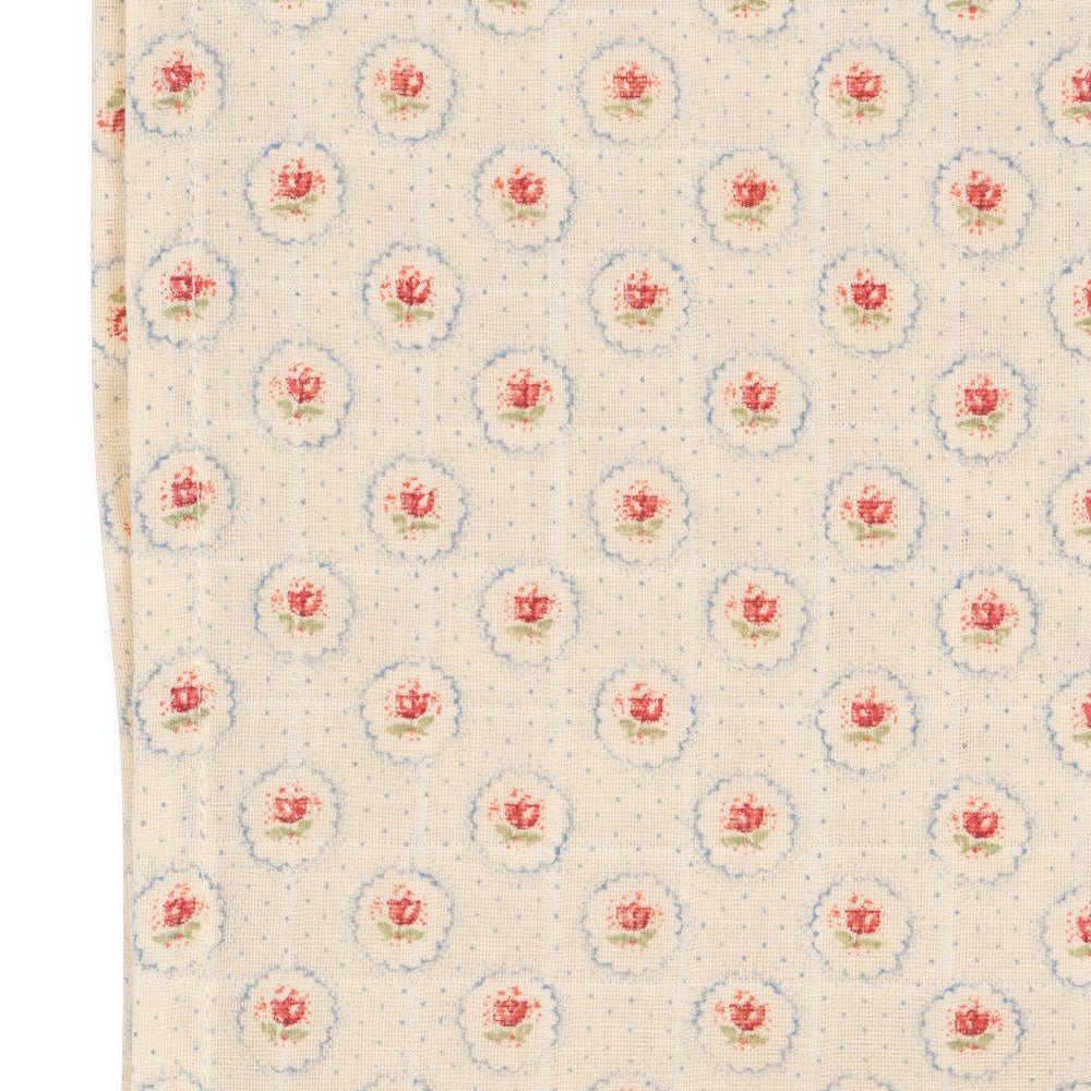 Die Musselintücher können bei 40 °C in der Maschine gewaschen werden. Bei Bedarf auf niedriger Stufe bügeln. Nicht bleichen. Trocknergeeignet bei niedrigen Temperaturen. Bitte vor dem ersten Gebrauch waschen und auf scharfe Gegenstände verzichten, um das Gewebe nicht zu beschädigen.