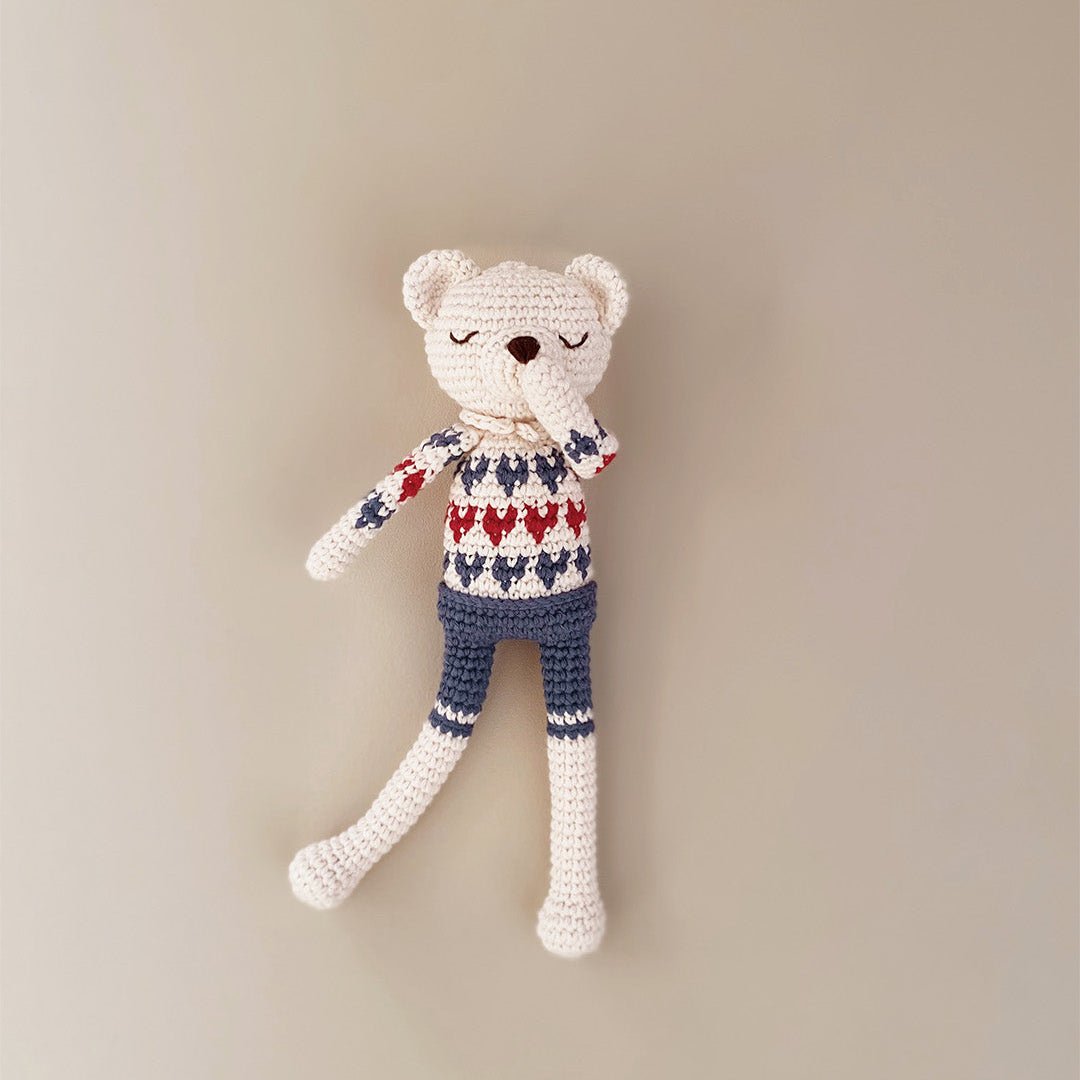Der Polar Bear Heart Sweater von Patti Oslo begeistert als liebevoll gestaltetes Spielzeug, das Kindern in jeder Jahreszeit Freude bereitet. Mit seinem kuscheligen Design und den ansprechenden Herzmotiven auf dem Pullover lädt der Bär dazu ein, gemeinsam schöne Momente zu erleben. Das hochwertige Spielzeug verbindet die festliche Romantik von Valentinstag mit alltagstauglicher Langlebigkeit und ist mehr als nur ein Kuscheltier: Er ist ein treuer Begleiter für Kinder, bietet Trost, Geborgenheit und fördert die emotionale Entwicklung. Gefertigt aus reinem Baumwollgarn (Bio) und gefüllt mit recyceltem Polyester, eignet sich der Polar Bear Heart Sweater besonders für empfindliche Haut. Durch die ethische Produktion in der Türkei sowie das Design aus Norwegen verkörpert er nachhaltige Werte und Handwerkskunst gleichermaßen — das ideale Geschenk für kleine und große Herzen, die Wert auf Nachhaltigkeit legen.