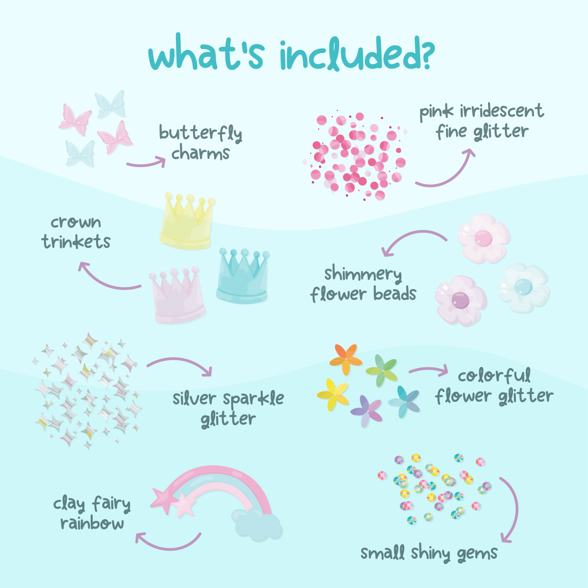 Das Fairy-Set eröffnet eine farbenfrohe Welt voller Schmetterlinge, Regenbögen und Blumen und regt dazu an, eigene kleine Feenlandschaften zu kreieren. Die Fun Fillers Sets lassen sich frei kombinieren und sind eine ideale Ergänzung zu bestehenden Sensorik-Materialien.