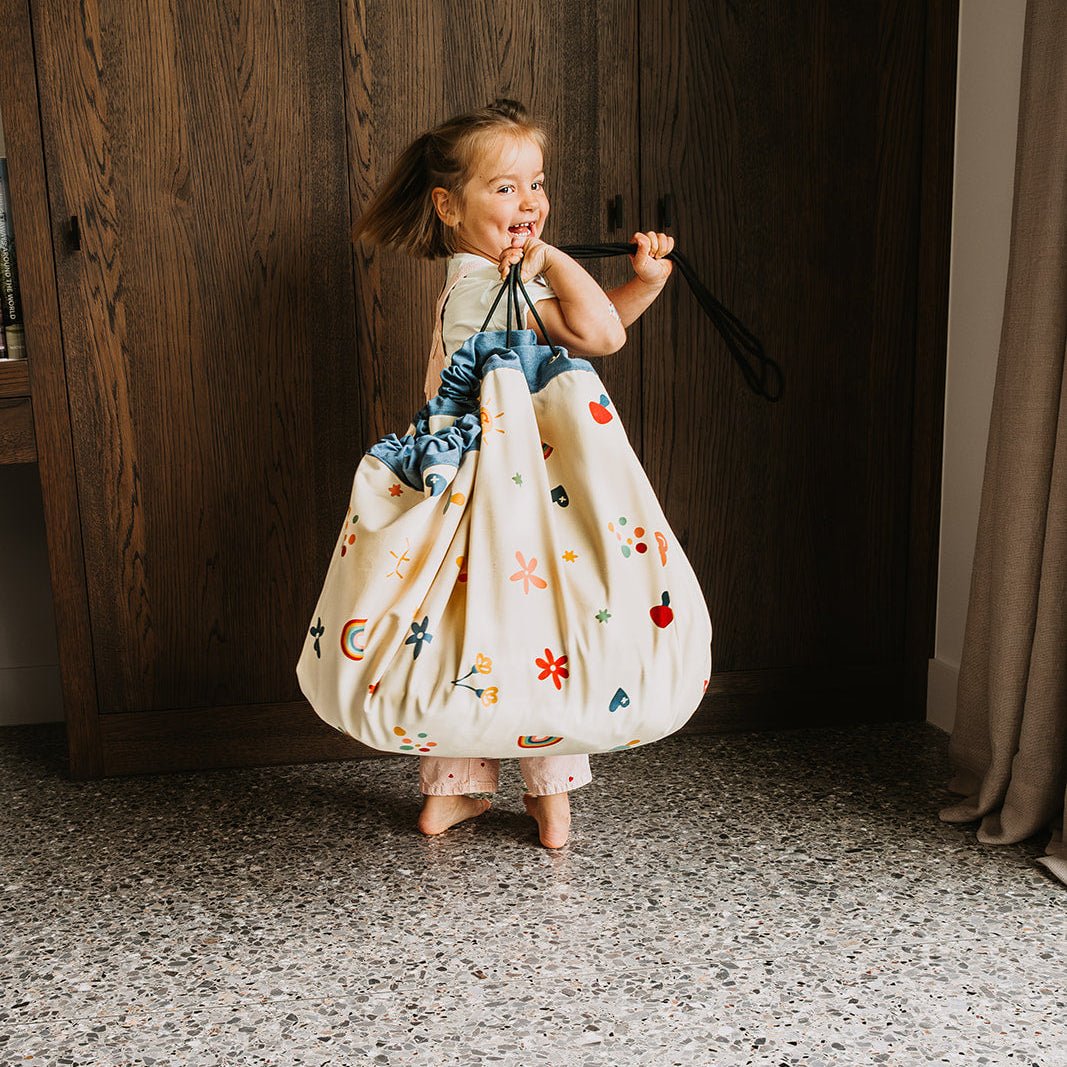 - 2-in-1 Funktion: Spielmatte und Aufbewahrungsbeutel in einem