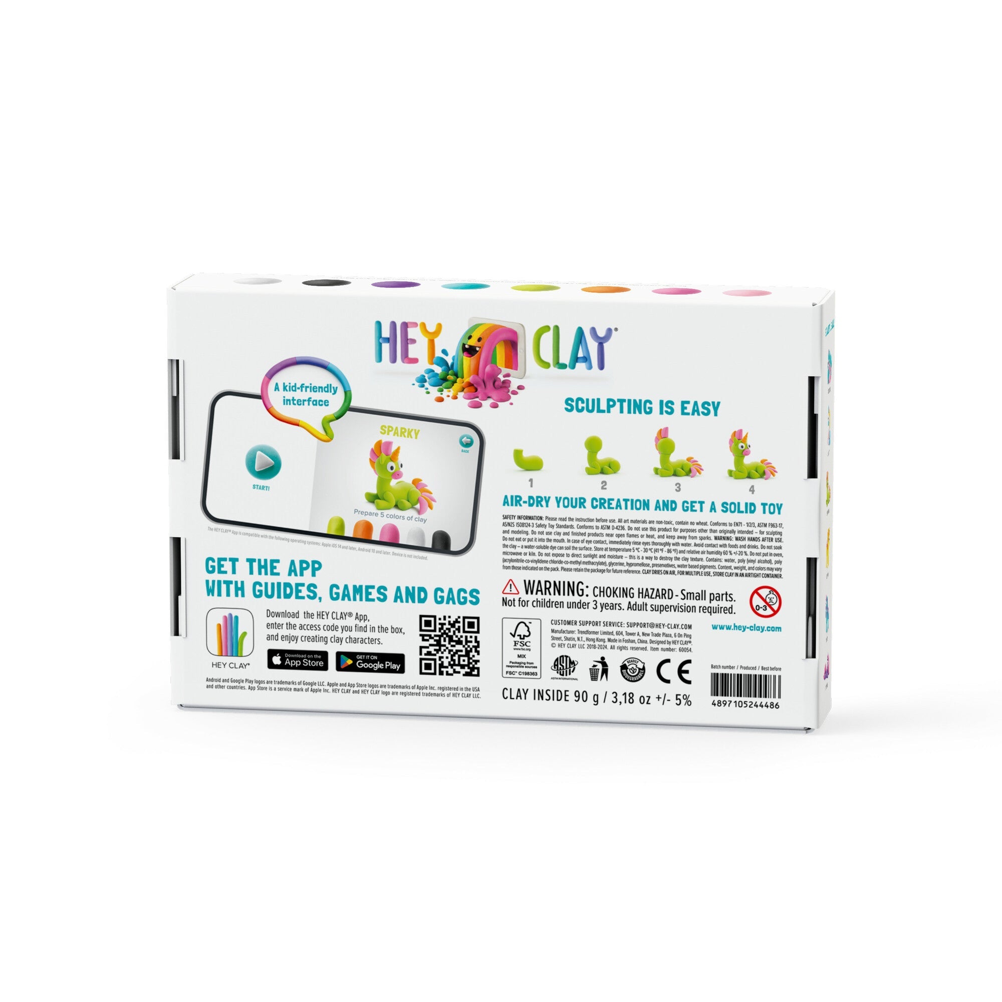 - Kostenloser Zugang zur Hey Clay App mit Anleitungen, animierten Witzen und Spielen zur Förderung der Kreativität.