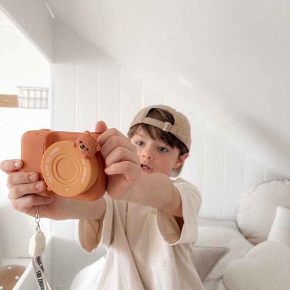 Entdecke die Welt der Fotografie mit der Sofortbildkamera für Kinder in niedlicher Bärenform von The Zoofamily ! Perfekt geeignet für Kinder von 5 bis 11 Jahren, verbindet diese Kamera Spaß am Fotografieren mit kreativem Bastelspaß, indem sie Schwarz-Weiß-Fotos direkt druckt, die anschließend ausgemalt werden können.