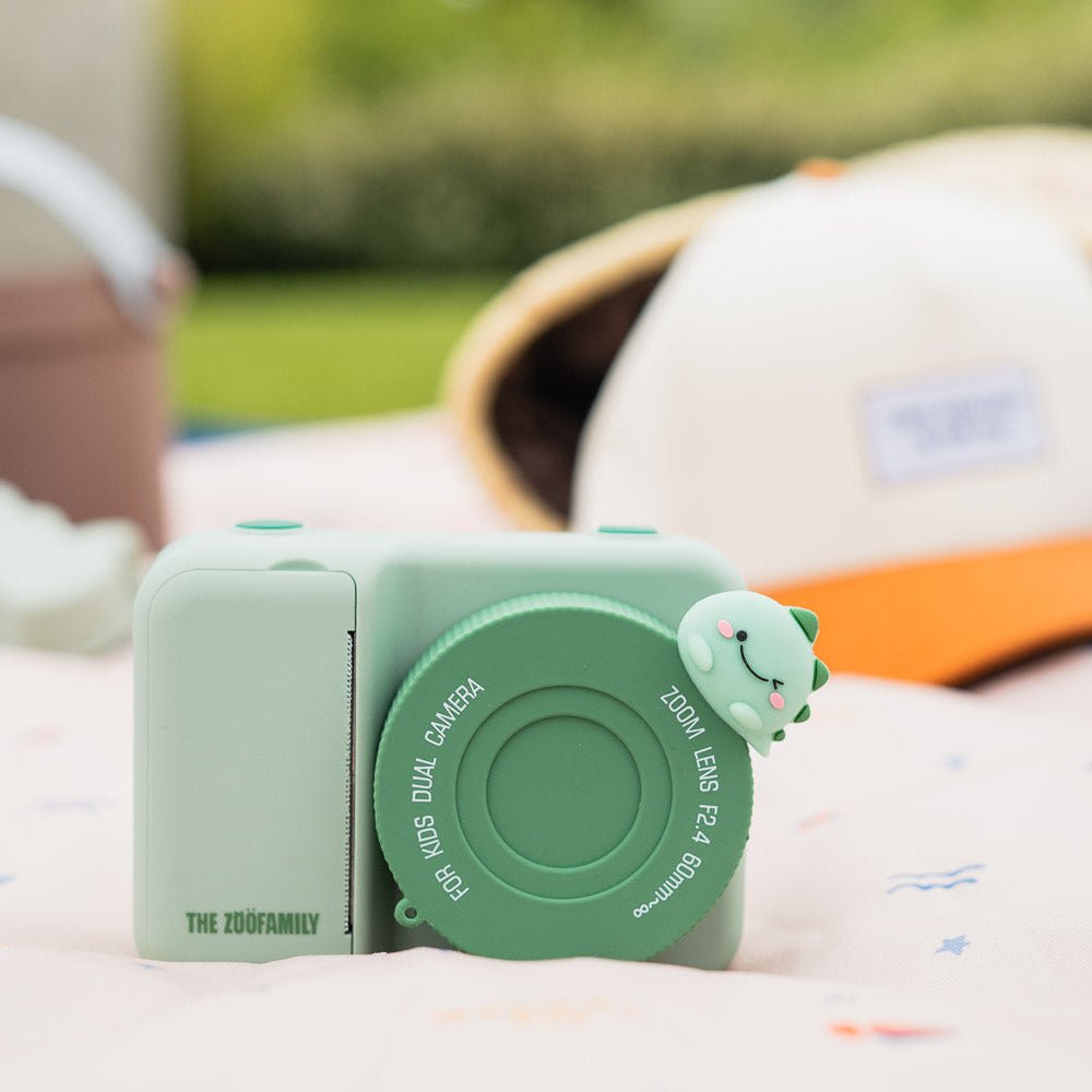 Entdecke die Welt der Fotografie mit der Sofortbildkamera für Kinder in niedlicher Dinoform von The Zoofamily ! Perfekt geeignet für Kinder von 5 bis 11 Jahren, verbindet diese Kamera Spaß am Fotografieren mit kreativem Bastelspaß, indem sie Schwarz-Weiß-Fotos direkt druckt, die anschließend ausgemalt werden können.