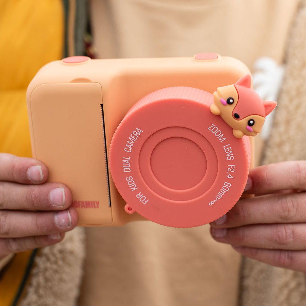 Entdecke die Welt der Fotografie mit der Sofortbildkamera für Kinder in niedlicher Fuchsform von The Zoofamily ! Perfekt geeignet für Kinder von 5 bis 11 Jahren, verbindet diese Kamera Spaß am Fotografieren mit kreativem Bastelspaß, indem sie Schwarz-Weiß-Fotos direkt druckt, die anschließend ausgemalt werden können.