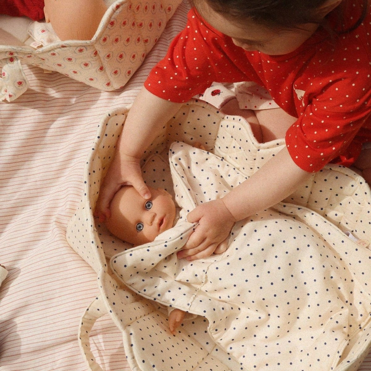 Der Puppentragekorb Konges Sløjd ist ein liebevoll gefertigtes Spielzeug, das kleinen Kindern ermöglicht, ihre Puppen überall sicher und bequem mitzunehmen. Das hochwertige Material unterstützt dabei nicht nur die Langlebigkeit, sondern sorgt auch für ein angenehmes Gefühl beim Tragen und Spielen. Mit seinem durchdachten Design ermuntert der Tragekorb Kinder ab 3 Jahren, erste Erfahrungen im fürsorglichen Umgang zu sammeln und ihre Lieblingspuppen jederzeit dabei zu haben. Die Kombination aus nachhaltiger Verarbeitung und verspielten Details macht den Puppentragekorb zu einem schönen Begleiter für verschiedenste Spielsituationen, sei es zu Hause, im Garten oder unterwegs. Durch die praktischen Tragegurte können Kinder selbstständig ihren Puppentragekorb transportieren und gleichzeitig ihre Fantasie entfalten. Die gemütliche Liegefläche lädt die Puppen zum Ausruhen ein und schenkt den Kindern Inspiration für viele kleine Spielgeschichten.