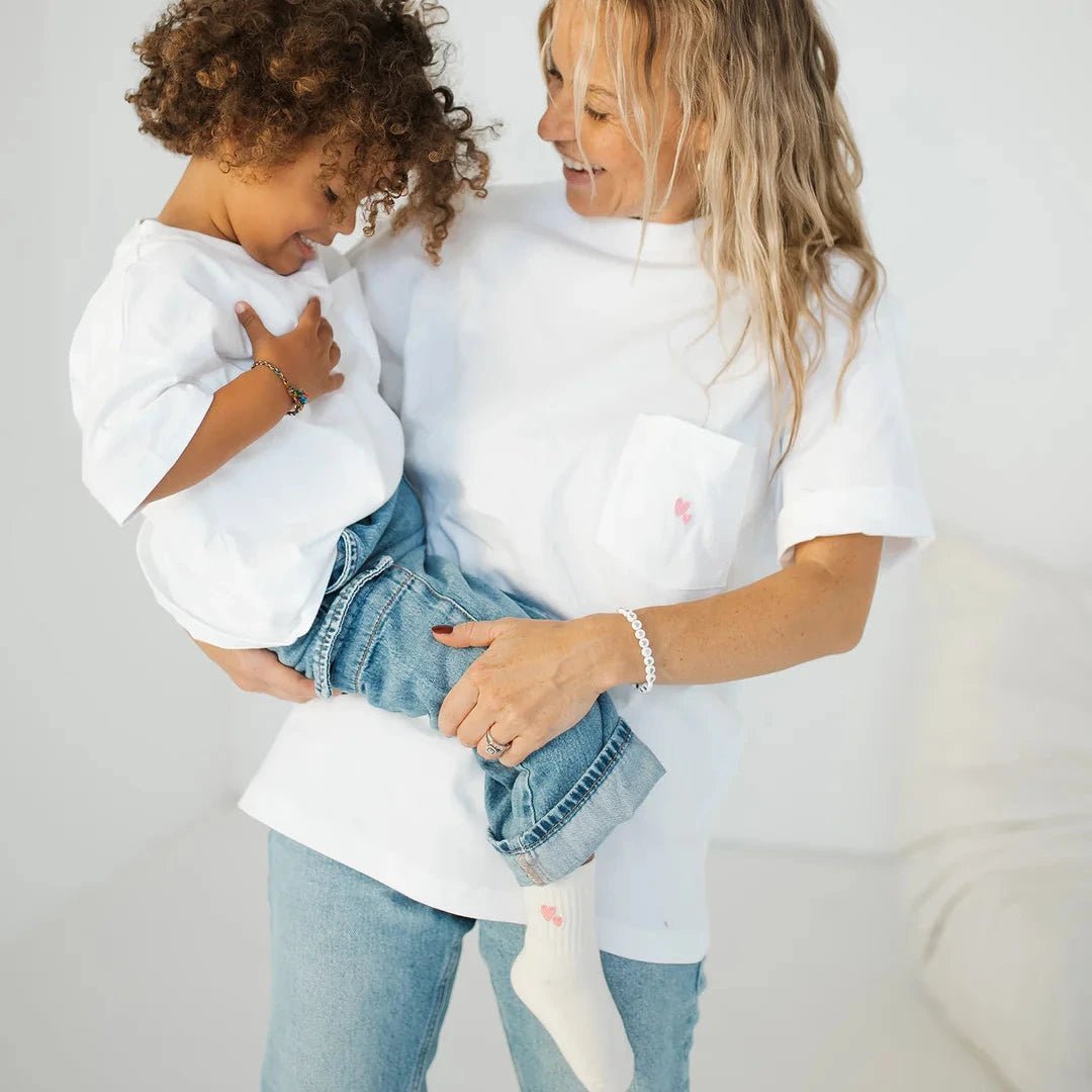 Verwöhnen Sie die Füße Ihrer Kleinen mit den extra weichen Herz-Socken in Peony von Atelier Rive. Diese stilvollen Socken sind mit einem süßen Herz-Logo am Knöchel versehen und passen ideal zu den hochwertigen Kleidungsstücken unserer Partnerlook-Collektion.