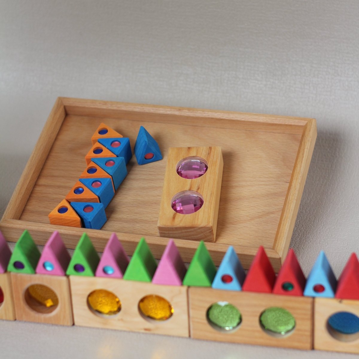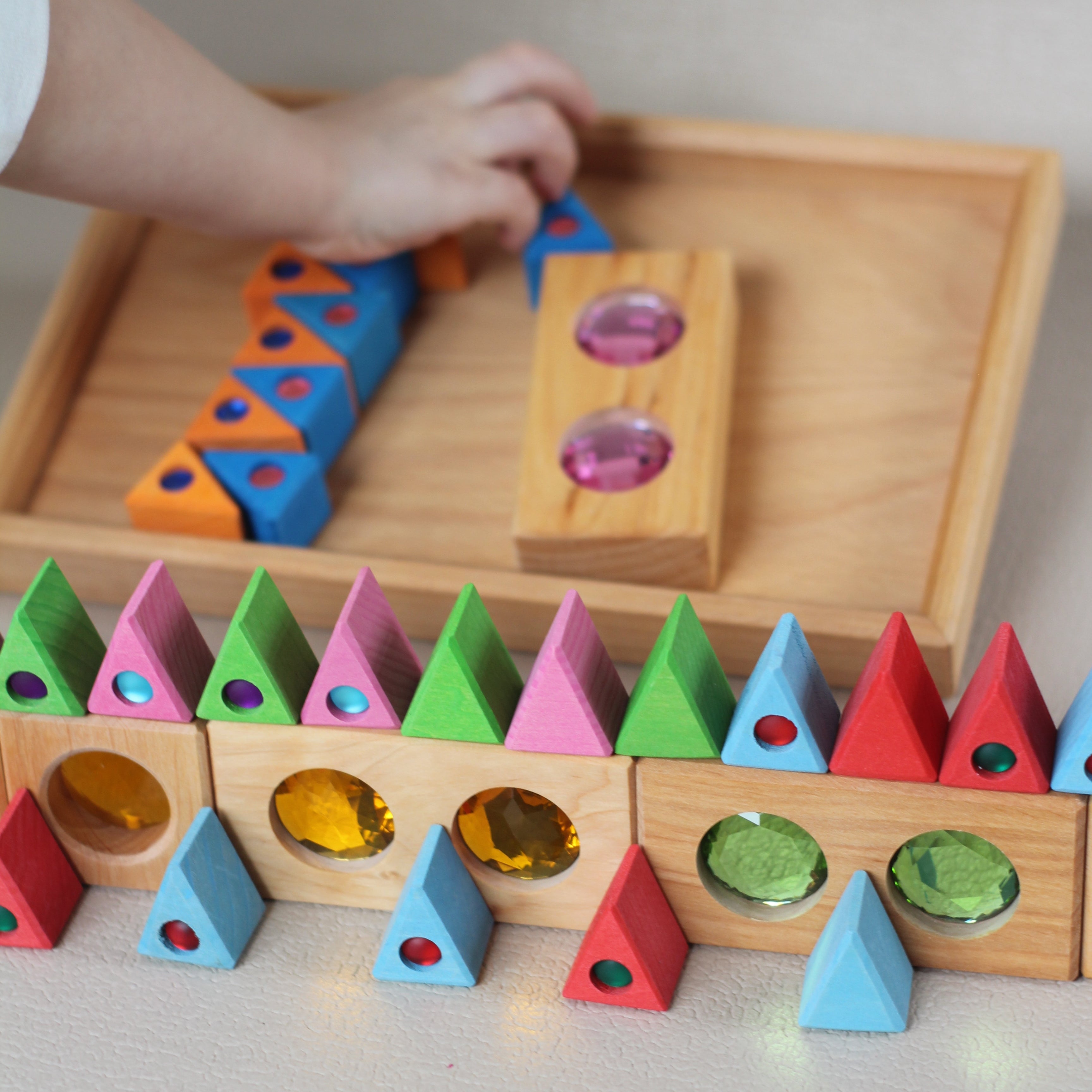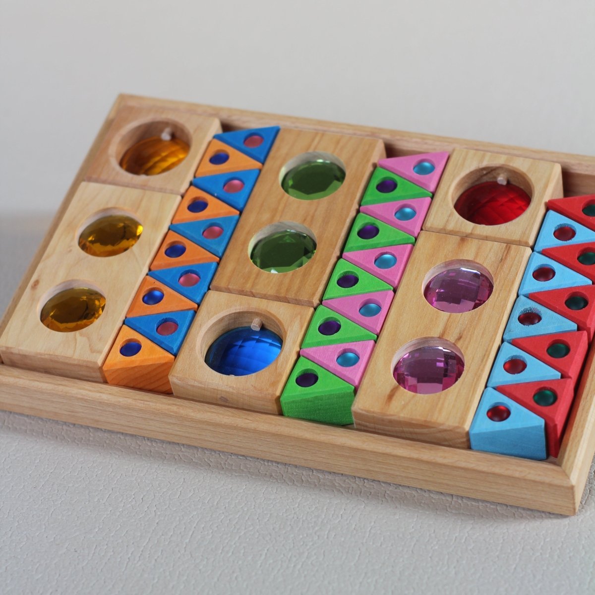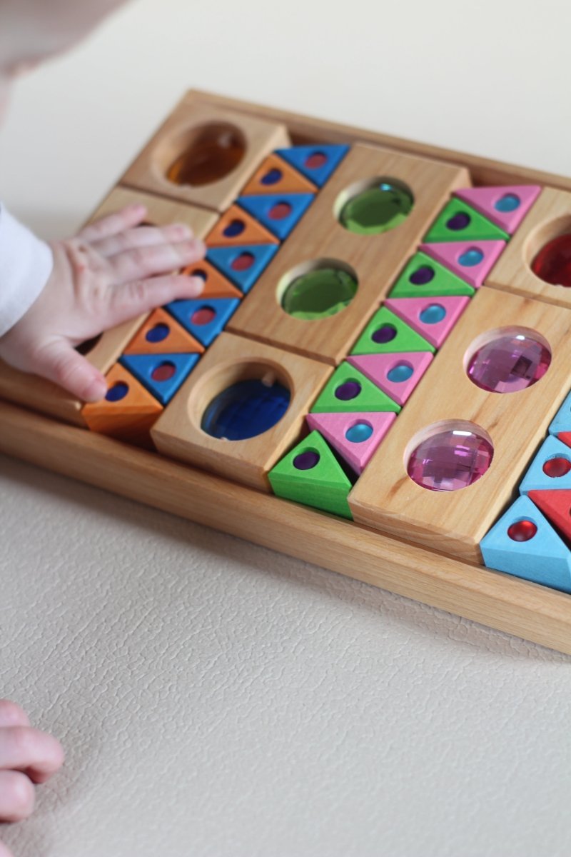 - Enthält funkelnde Holzbausteine, durchscheinende Facetten und leuchtende Dreiecke
