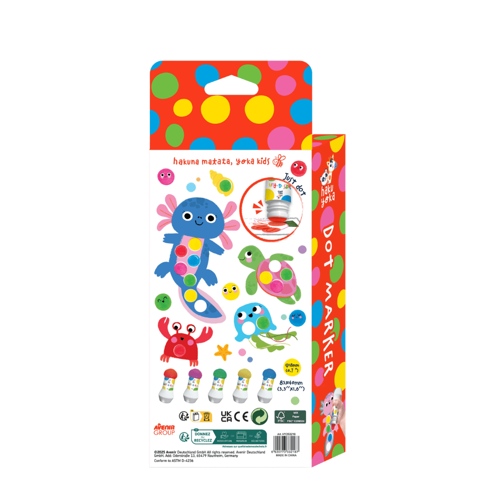 Entdecken Sie die farbenfrohe Welt der Punktmarker von HAKUYOKA! Dieses hochwertige Set besteht aus fünf Markern in klassischen Farben und bietet unzählige Möglichkeiten für kreativen Bastelspaß. Die Marker wurden speziell entwickelt, um die Fantasie und Kreativität, besonders bei Kindern, optimal zu fördern.