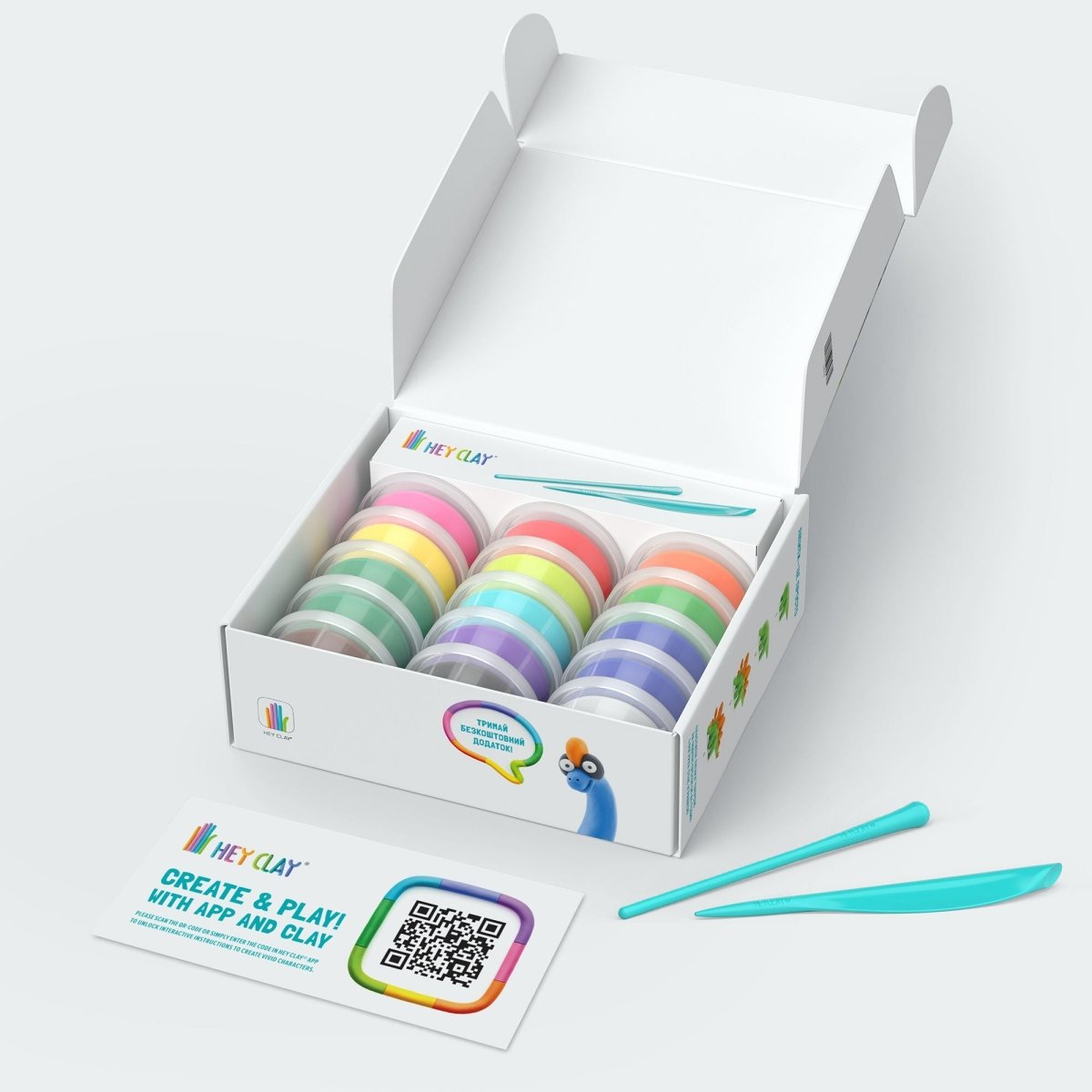 - Hey Clay Dinosaurier Set mit 15 bunten Knetdosen und 2 Modellierwerkzeugen