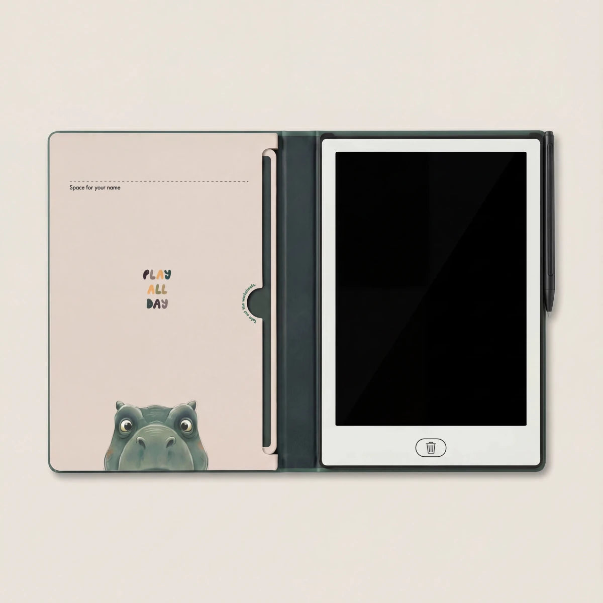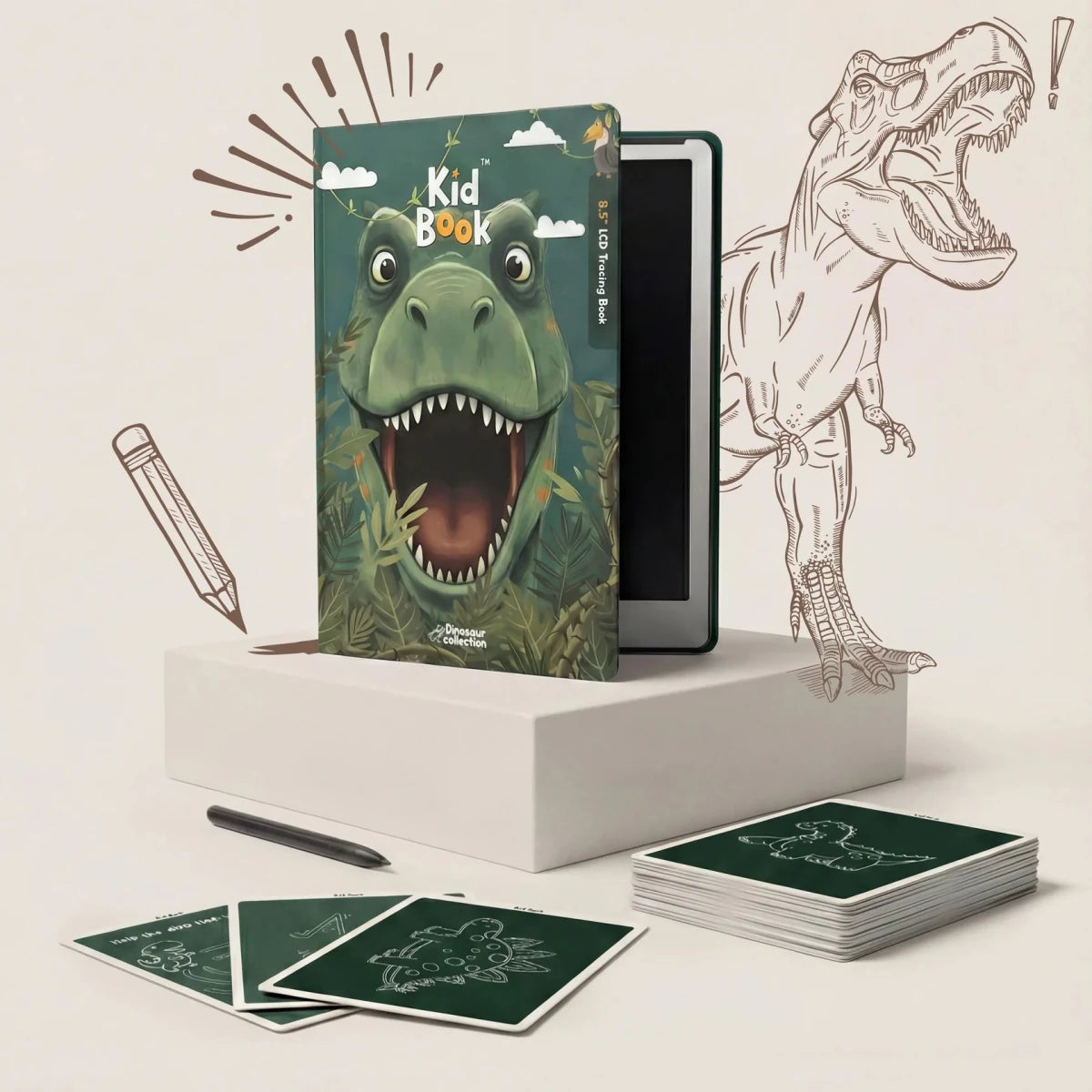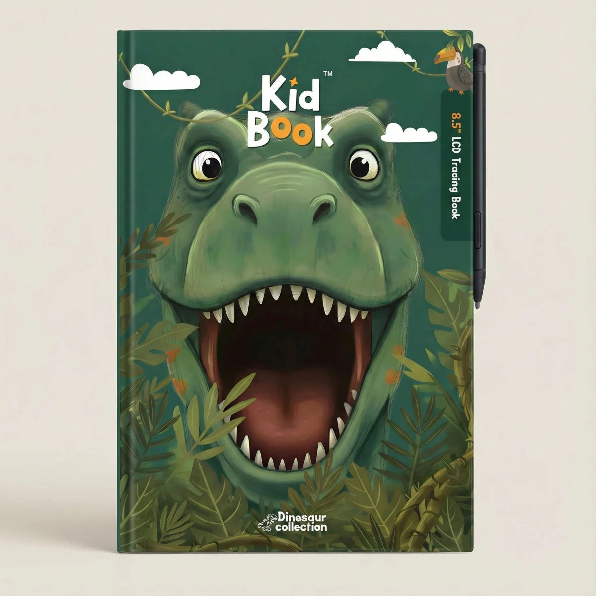 Entdecken Sie das innovative Grafiktablett mit Arbeitskarten – KidBook Dino von Kidinex: Ein Lernwerkzeug, das weit mehr als ein digitales Zeichentablett ist. Das KidBook begleitet Kinder auf ihrem Weg zu kreativem und erfolgreichem Lernen, indem es digitales Zeichnen, Schreiben und Üben in einem Produkt vereint. Im Set enthalten sind 20 beidseitig bedruckte Arbeitskarten, die insgesamt 40 abwechslungsreiche Aufgaben bieten – von ersten Schwungübungen bis zu Buchstaben, Zahlen und altersgerechten Themenzeichnungen wie Safari-Tieren.