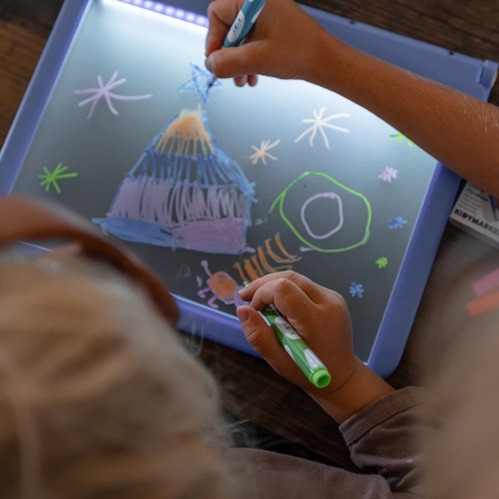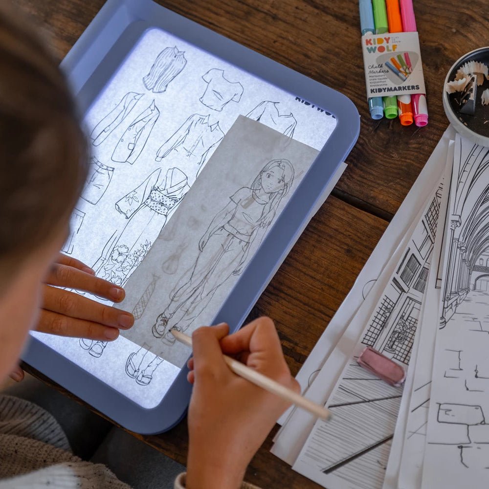 Die leuchtender Zeichentisch blau für Kinder bietet kreativen Köpfen zahlreiche Möglichkeiten, ihrer Fantasie Ausdruck zu verleihen. Ob zum Nachzeichnen von Manga-Helden, zum Erstellen eigener Kunstwerke oder als inspirierende Lichtquelle beim Malen – diese Tafel ist ein vielseitiges Hilfsmittel im Kinderzimmer. Entwickelt für Kinder ermöglicht das Produkt ein einfaches, exaktes Zeichnen durch die beleuchtete Oberfläche. Gerade bei schlechten Lichtverhältnissen sorgt die LED-Tafel für die optimale Ausleuchtung der Vorlage. Der praktische magnetische Deckel mit Anti-Rutsch-Pads garantiert, dass das Papier nicht verrutscht und schützt die Zeichnung während des Malprozesses. Mit der tragbaren, wiederaufladbaren Designtafel können Kinder sowohl zu Hause als auch unterwegs kreativ sein. Die einfache Handhabung über den USB-C-Anschluss macht das Aufladen unkompliziert und flexibel, während das Thema Manga für zusätzlichen Spaß sorgt. Dem Lieferumfang sind verschiedene Vorlagen und nützliches Zubehör beigelegt, damit sofort losgelegt werden kann.