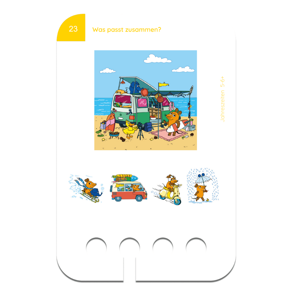Der "Jahreszeiten mit der Maus 5-6+ Lochkasten“ vom Kölner Lernspielverlag lädt Kinder dazu ein, die Veränderungen in der Natur spielerisch zu entdecken. Gemeinsam mit der Maus, dem Elefanten und der Ente lernen Kinder typische Merkmale der vier Jahreszeiten kennen und ordnen diese richtig zu.