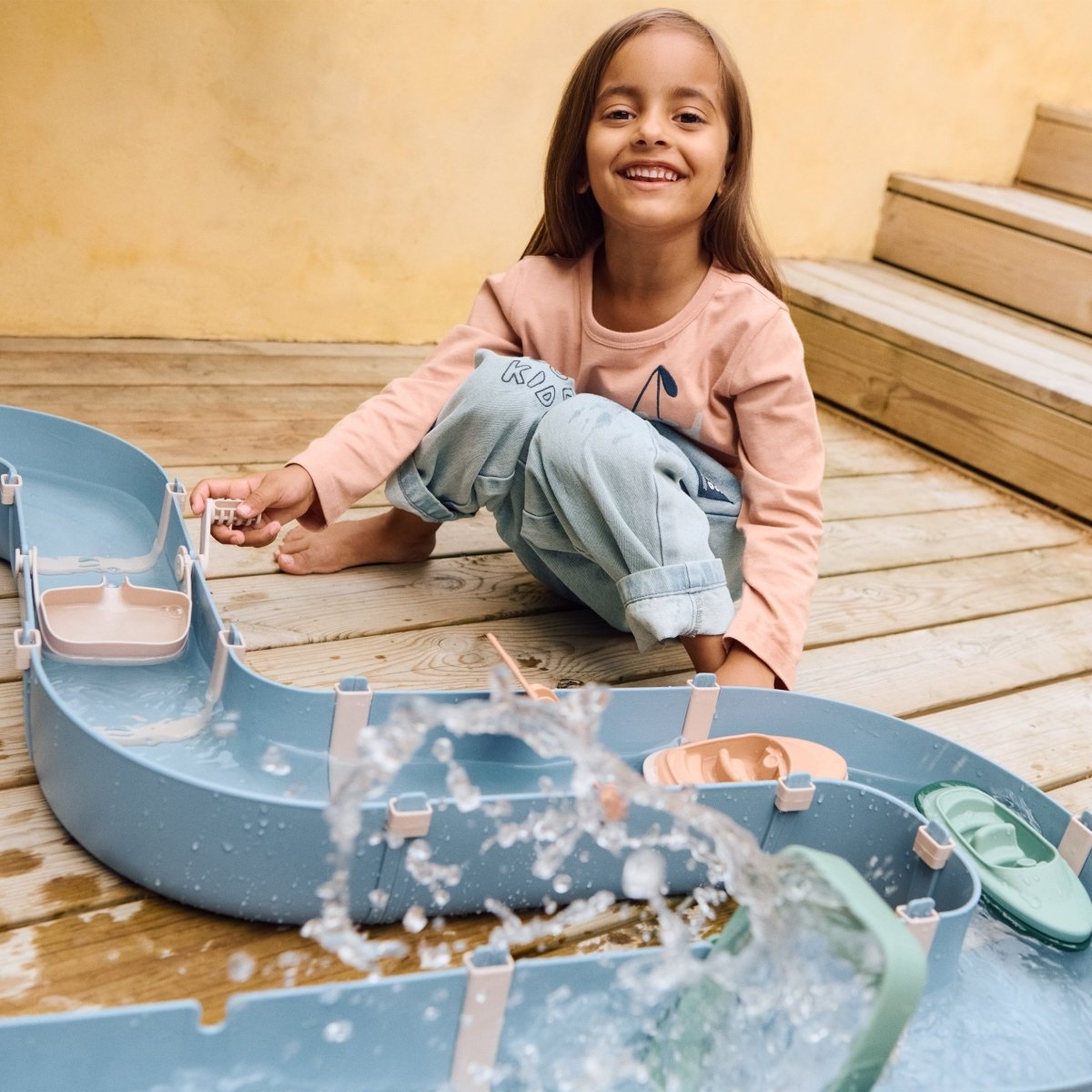 Mit dem hochwertigen CASSIAN Wasserstraßen-Set von Liewood erschaffst du eine faszinierende Miniaturwelt für neugierige Kinder. Das Set lädt zu kreativen Abenteuern ein – Kinder steuern Boote durch verwinkelte Kanäle, drehen an Wasserrädern und experimentieren mit dem Wasserfluss. Spielerisch lernen kleine Forscher, wie sich Wasser bewegt, hebt und spritzt.