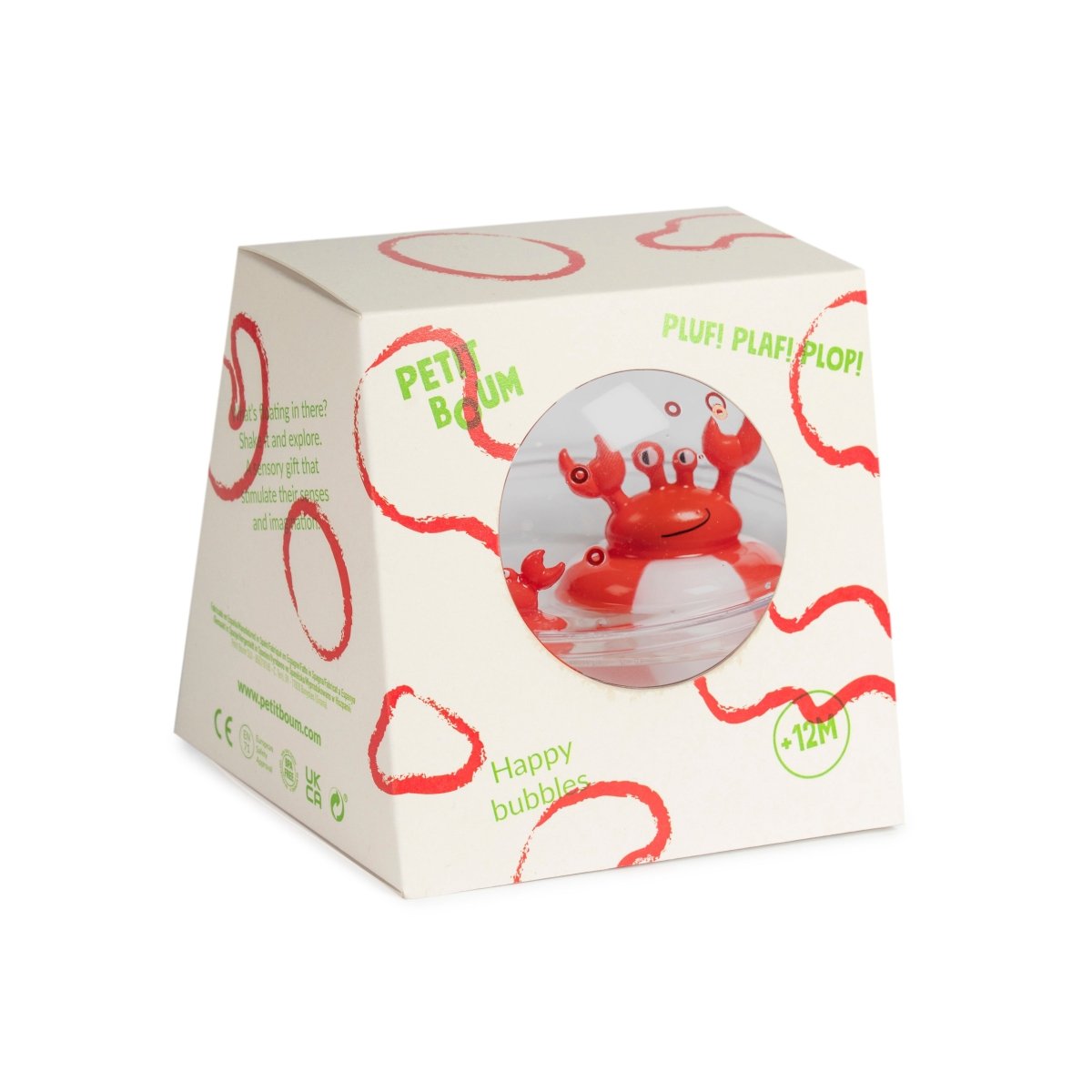 Petit Boum Happy Bubbles Crabs bietet Kindern ab 6 Monaten faszinierendes Badevergnügen und fördert spielerisch ihre Sinne. In der schwimmenden, transparenten Kugel mit kleinen Krabben und funkelnden Glitzerpartikeln entsteht eine spannende Unterwasserwelt zum Staunen und Entdecken – im Bad oder Pool.