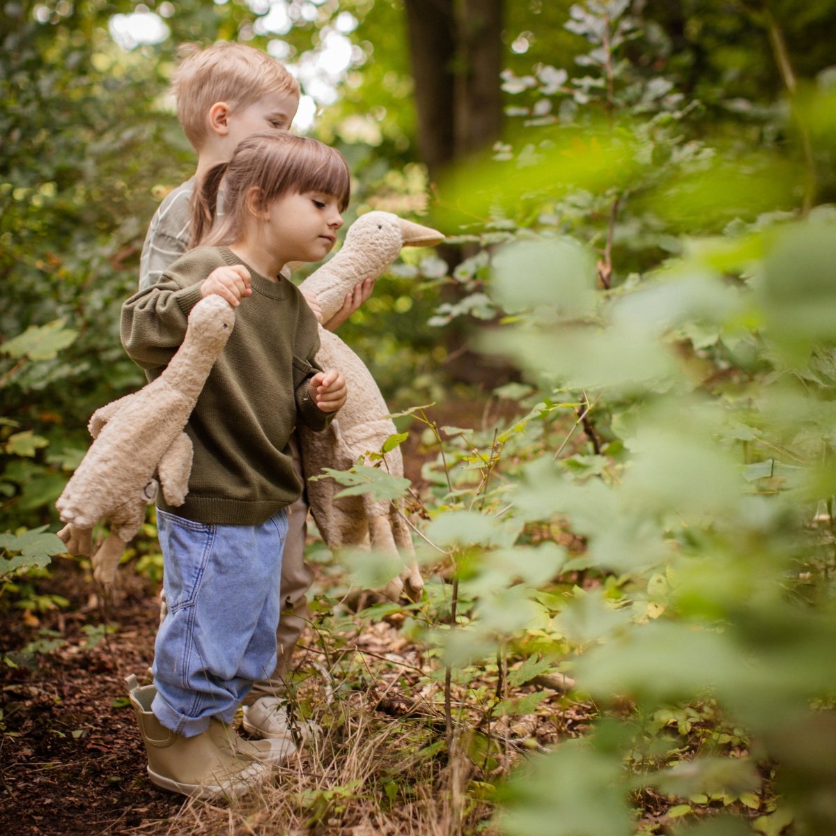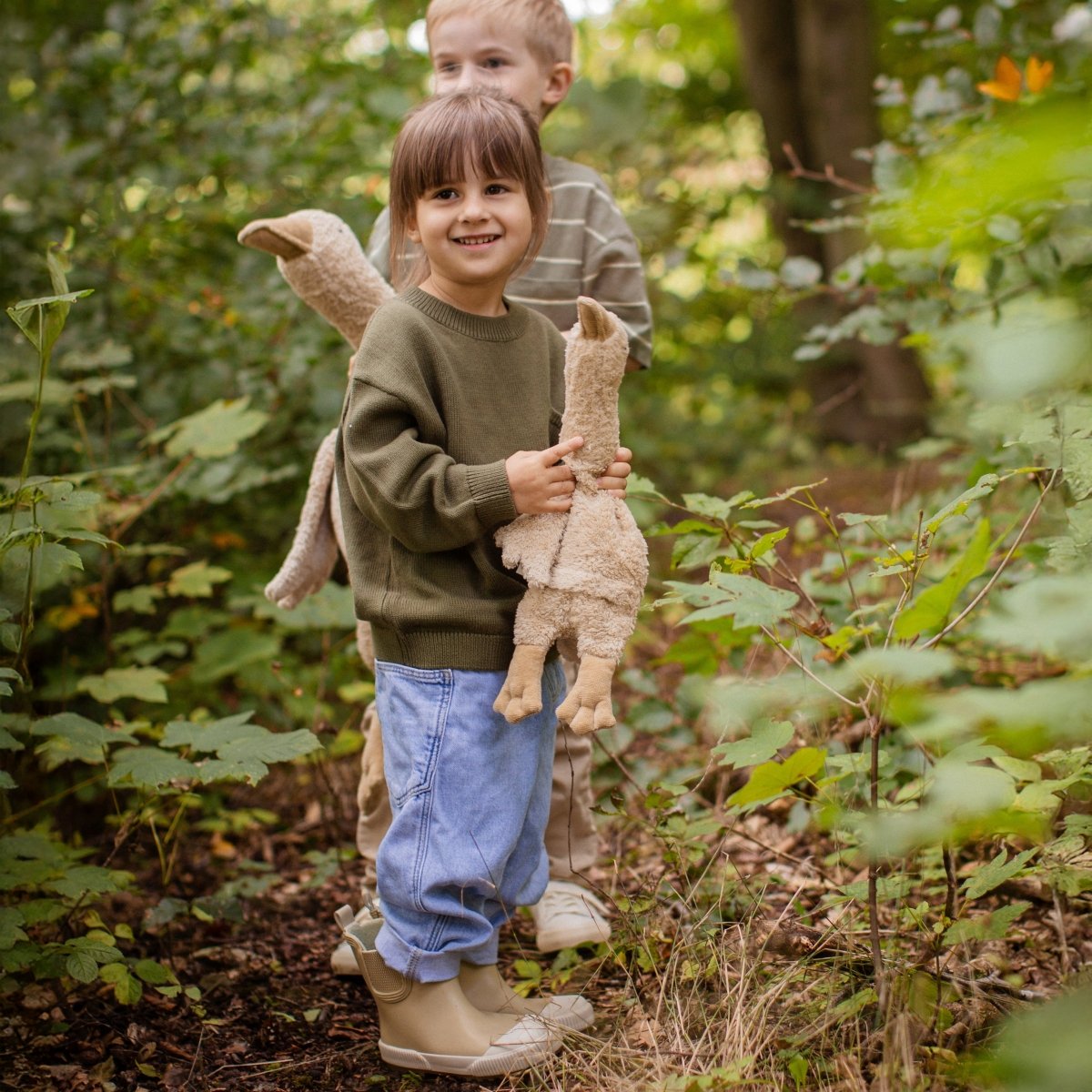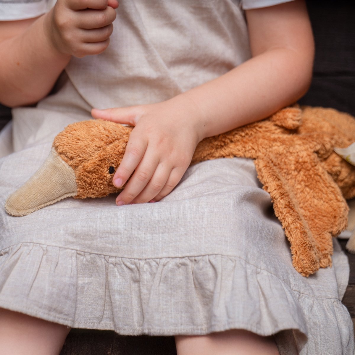 Mit der Gans von Senger können Sie unbesorgt kuscheln, da sie komplett vegan ist. Mit ihrer Größe von 47 cm ist sie ein perfektes, nachhaltiges und langlebiges Geschenk, das Freude bereitet.