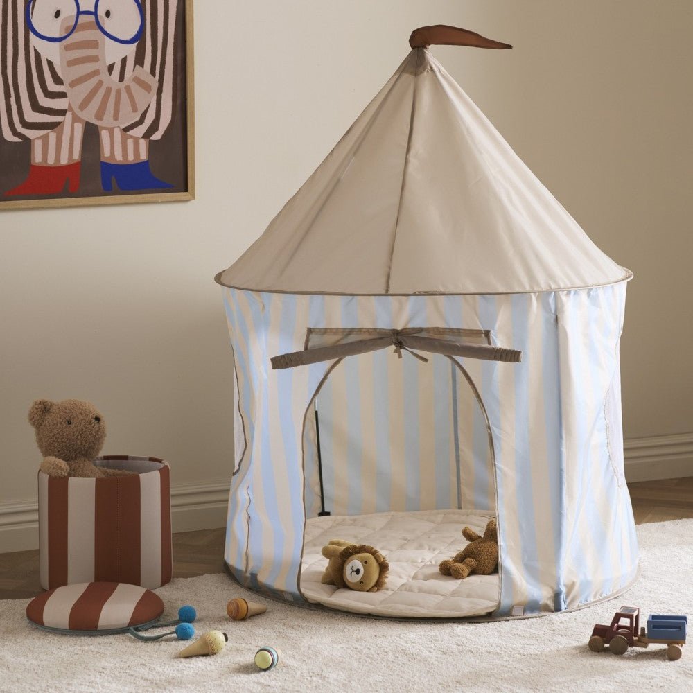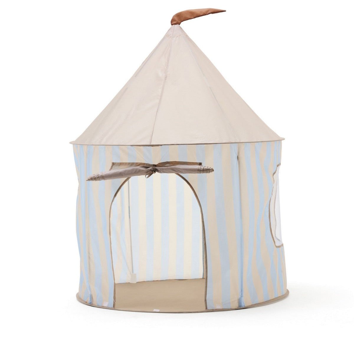 Mit dem Spielzelt Kid's Concept in hellblauen Streifen holen Sie einen zauberhaften Rückzugsort in Ihr Kinderzimmer. Hier können Kinder ab 24 Monaten in eine fantasievolle Welt eintauchen, lesen, spielen oder sich einfach ausruhen. Die Maße von 130x100x100 cm bieten genügend Platz für kleine Abenteuer – allein oder mit Freunden. Das Design in zarten Streifen und Khakigrün wirkt sehr dezent und fügt sich harmonisch in jede Wohn- oder Spielumgebung ein.